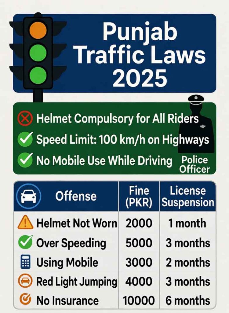 پنجاب نے حال ہی میں ٹریفک قوانین کو اس لیے اپڈیٹ کیا ہے تاکہ سڑکوں کو زیادہ محفوظ بنایا جا سکے، روزانہ کے حادثات کم ہوں، اور بڑھتی ہوئی خلاف ورزیوں کو روکا جا سکے۔ پرانے قوانین تقریباً 60 سال پرانے تھے، اس لیے حکومت نے انہیں جدید بنانے کا فیصلہ کیا ہے، جن میں ڈیجیٹل نظام، زیادہ جرمانے اور سخت نگرانی شامل ہیں۔ یہ تبدیلیاں ہر ڈرائیور کو متاثر کرتی ہیں، چاہے وہ موٹر سائیکل چلاتا ہو، کار، ویگن، بس یا ٹرک۔